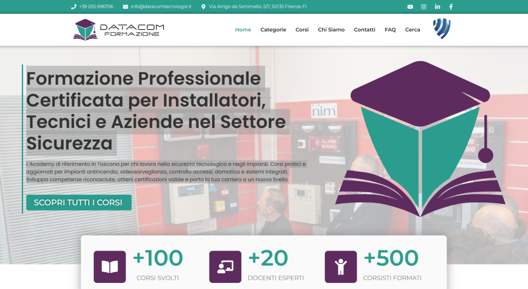 L’Academy di riferimento in Toscana per chi lavora nella sicurezza tecnologica e negli impianti. Corsi pratici e aggiornati per impianti antincendio, videosorveglianza, controllo accessi, domotica e sistemi integrati. Sviluppa competenze riconosciute, ottieni certificazioni valide e porta la tua carriera a un nuovo livello.
